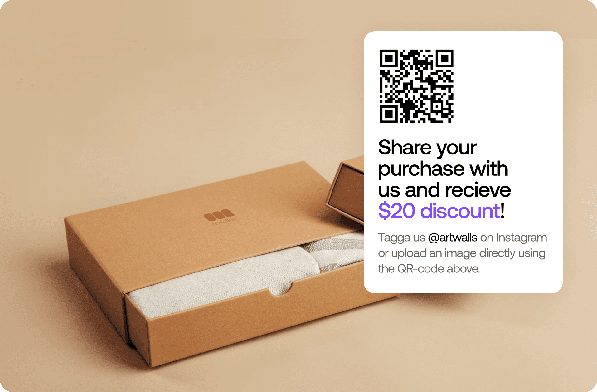 To leverage the thrill of trying a freshly delivered product, you can include a package insert (e.g. a card) in each package with a QR code to your upload form or encourage them to share on social media.